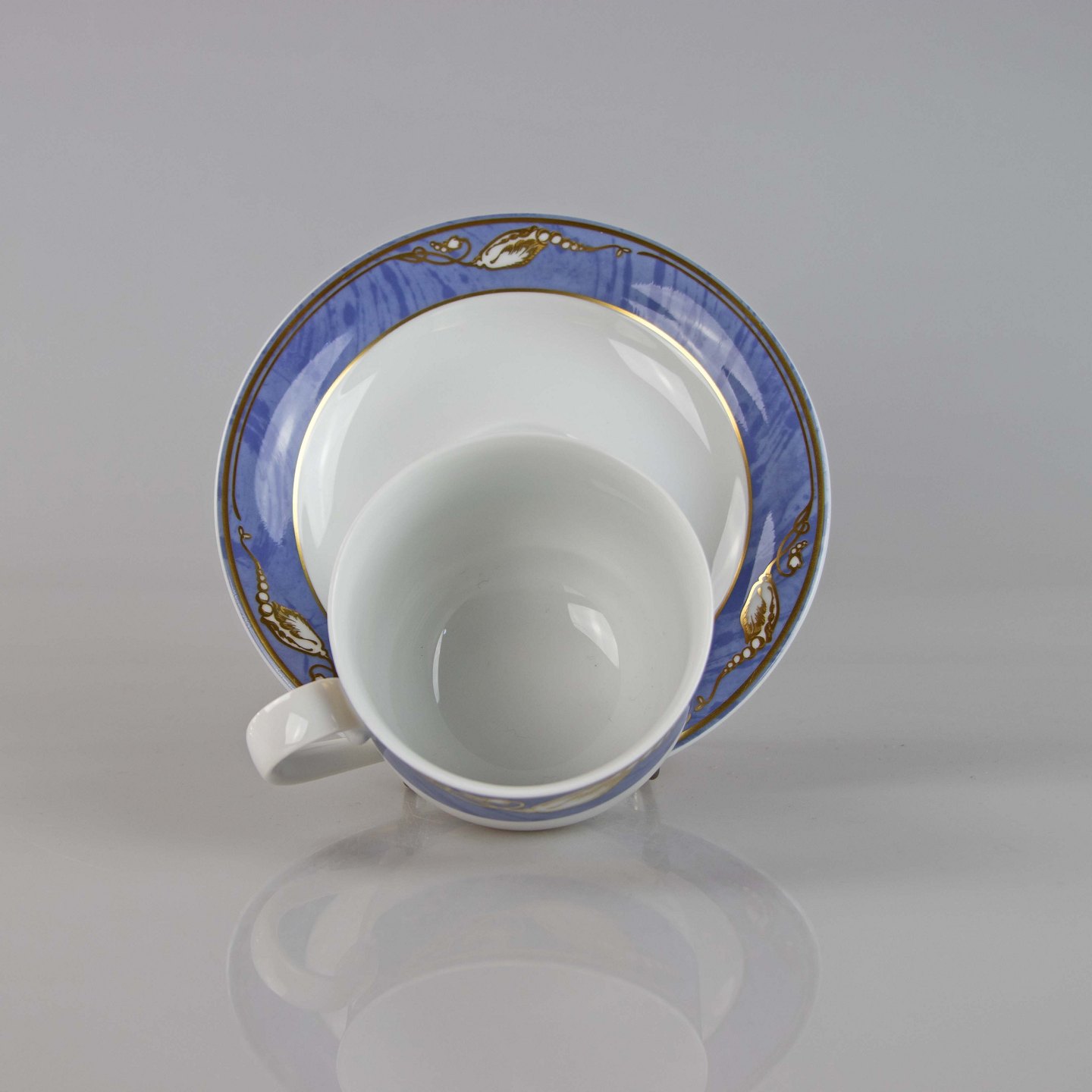 Kaffekop med underkop i porcelæn fra stellet Lyseblå magnolia nr. 072 og 073