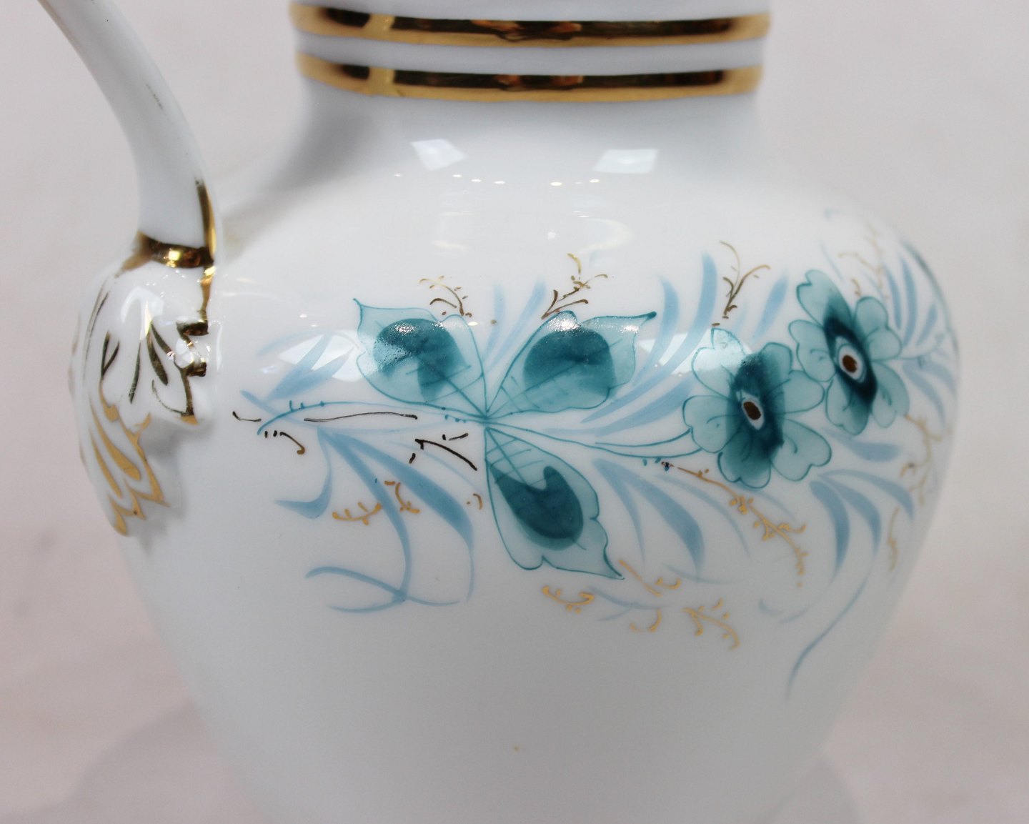 Hvid porcelæn chokoladekande dekoreret med guld og grønne farver fra B&G.
