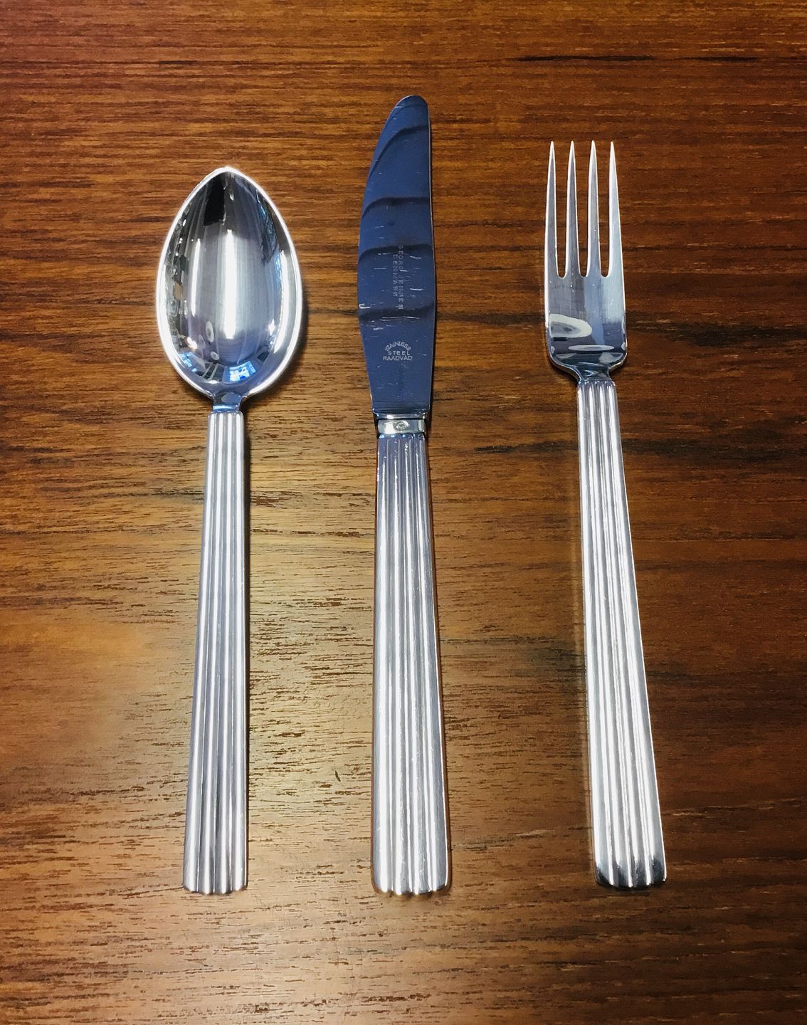 Text available in Danish: Bernadotte Sterling bestik fra Georg Jensen i fin stand,