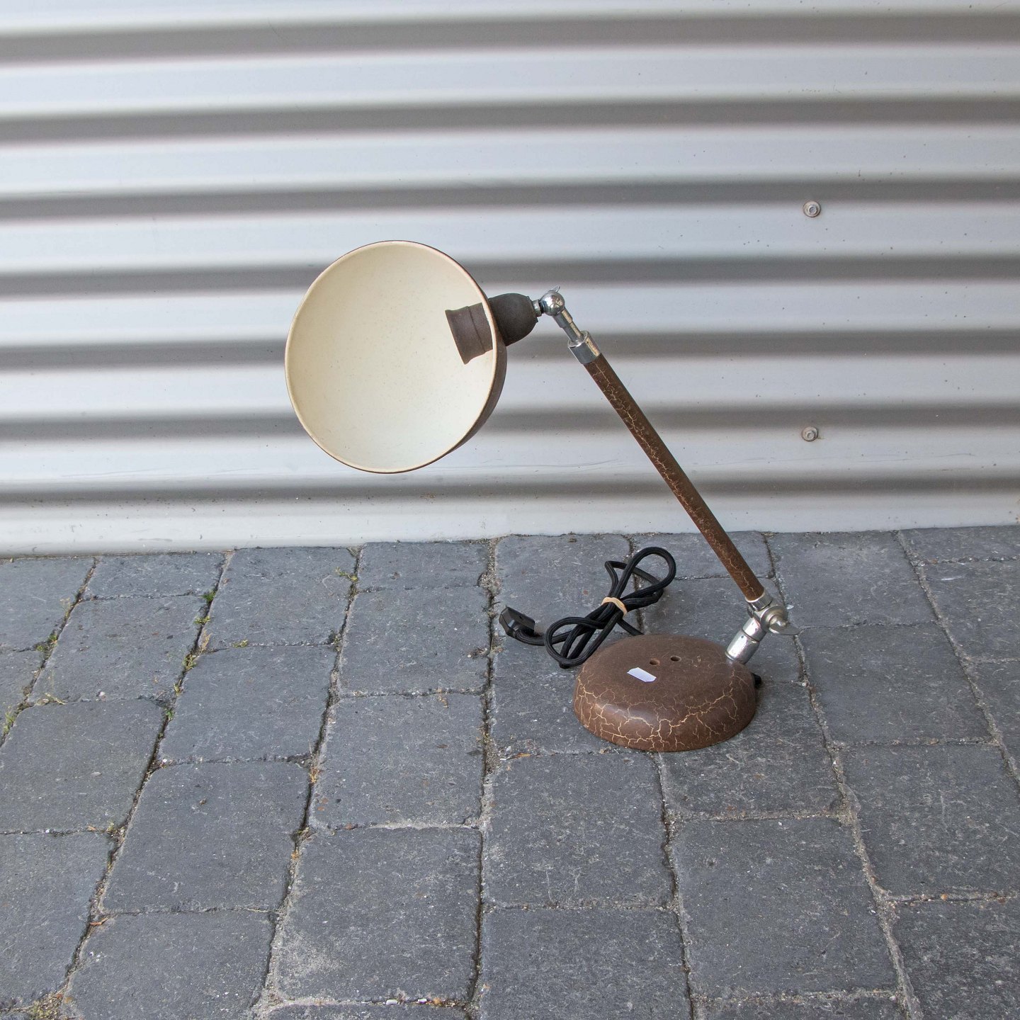 Lampen er regulerbar med krakkeleret brunlakeret overflade og stabil fod.