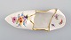 Antik Meissen slipper i håndmalet porcelæn med blomstermotiver og guldkant. 1800-tallet.