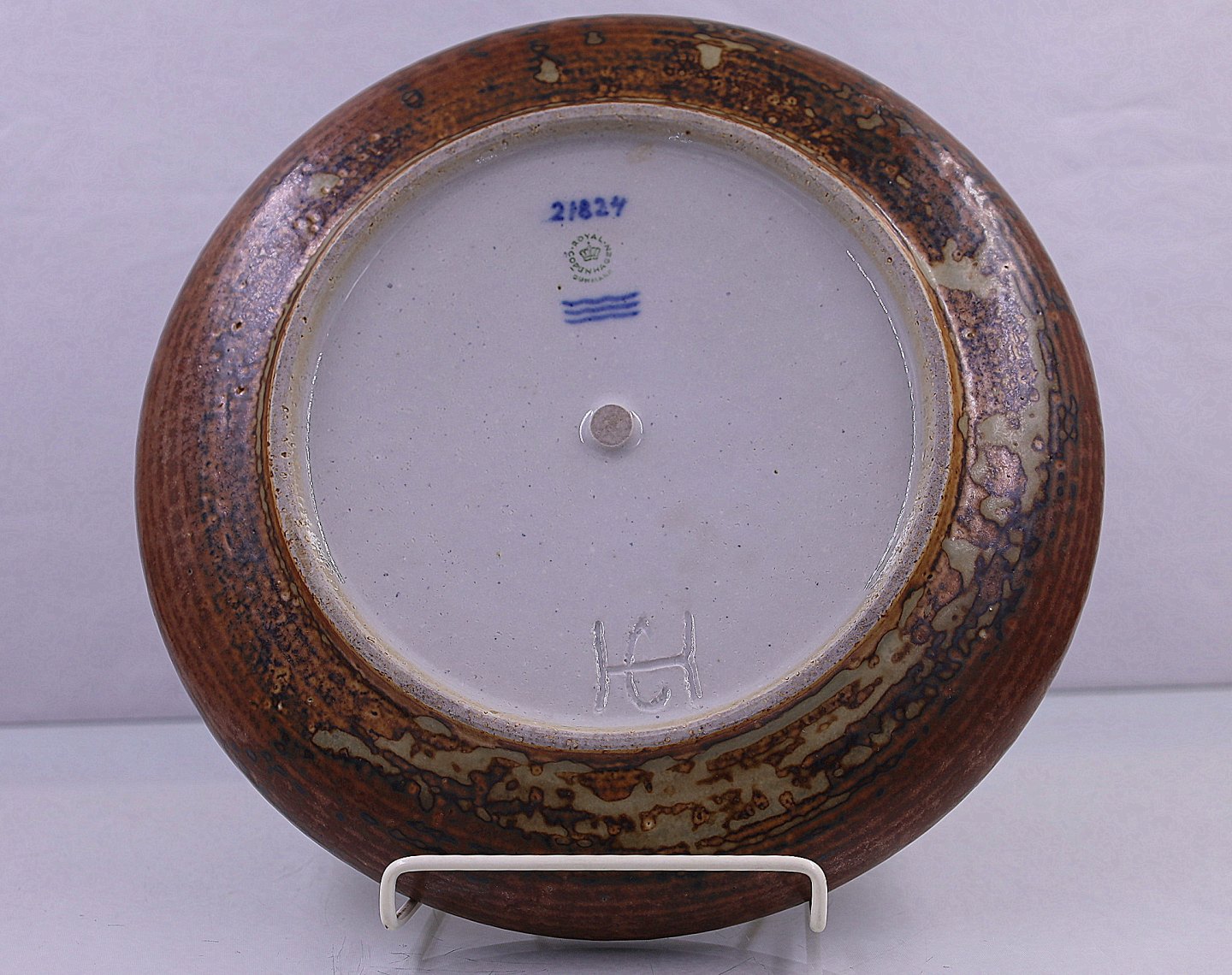 Royal Copenhagen. Bordfad i keramik, nr 21824. Fadet changerer i brunlige farver. Fadet er signeret og 1. sortering.