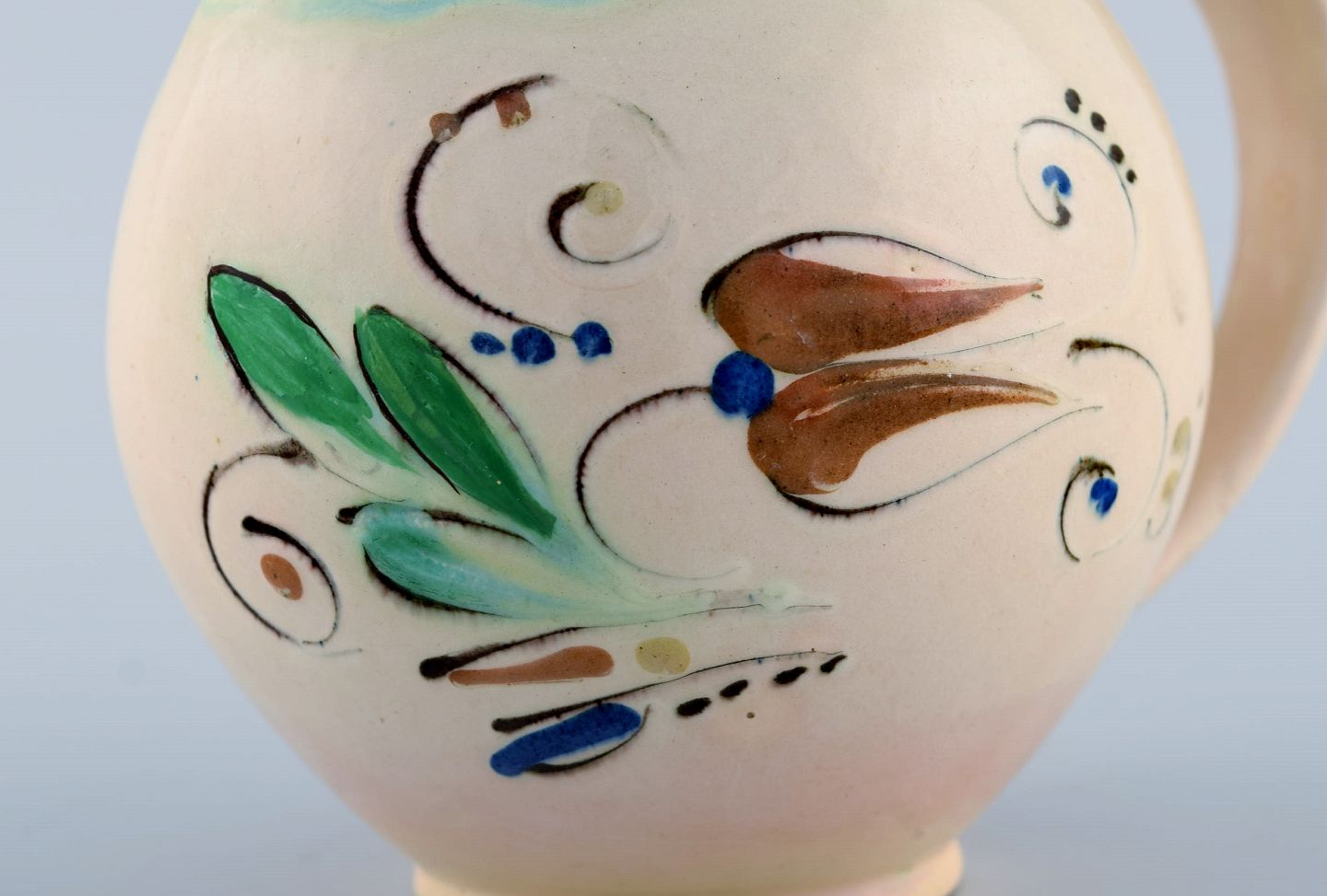 Kähler, HAK. Kande i glaseret stentøj. Blomster på cremefarvet baggrund. 1930/40'erne.