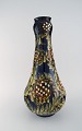 Kähler, HAK. Stor vase i glaseret stentøj. Blomster på blå baggrund. 1930/40'erne.