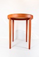 Sidebord med rødmalet stel med bordplade af metal af dansk design fra 1960erne.