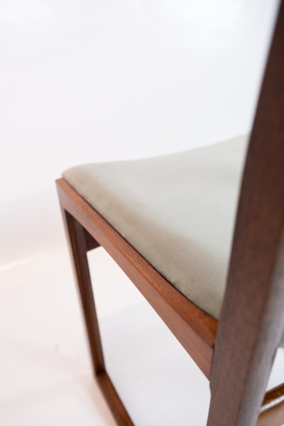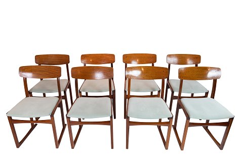 Et sæt af 8 Spisestuestole - Teak - Lyst Stof - Dansk Design - 1960