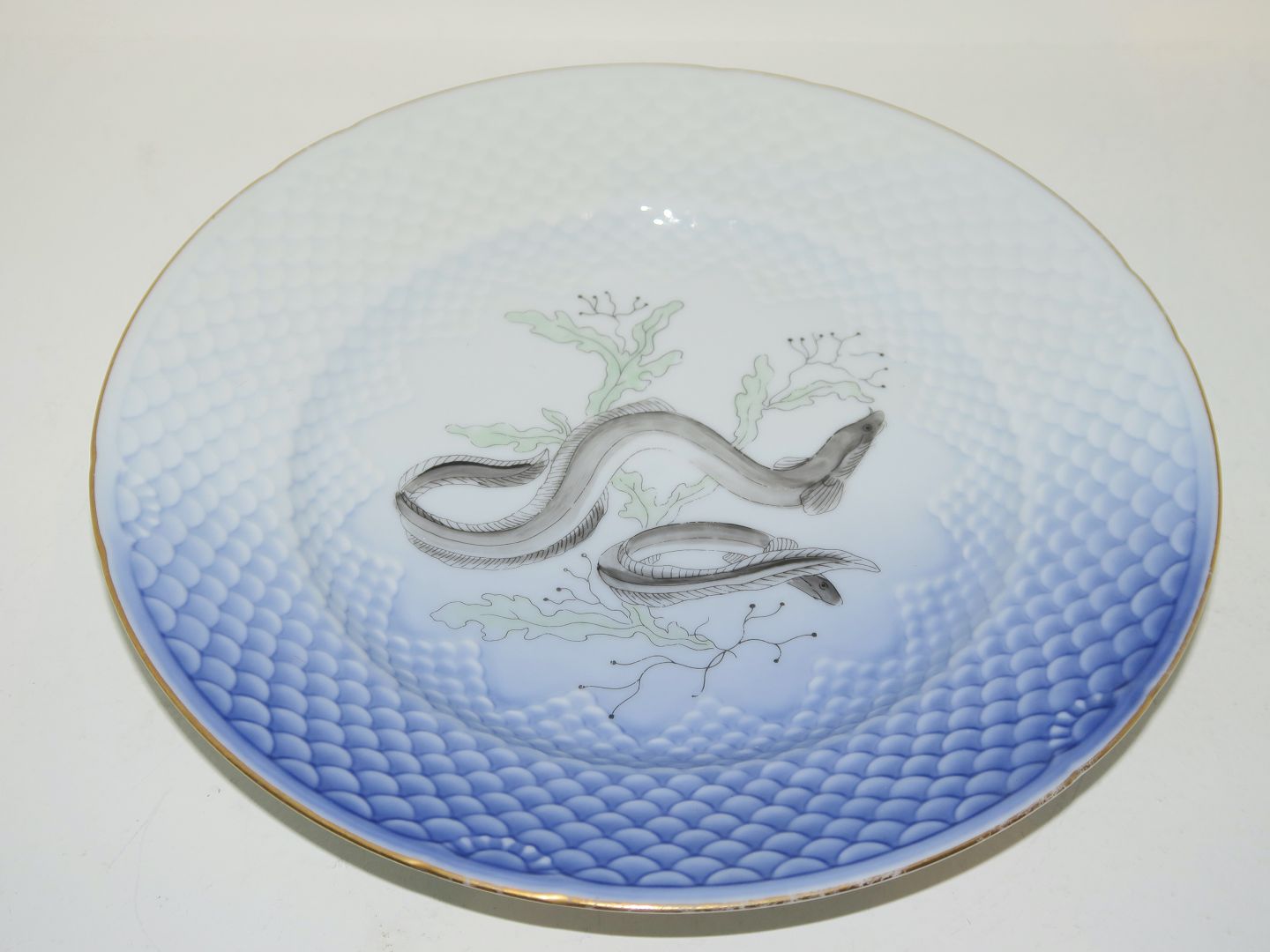 Bing & Grøndahl Måge med guldkant, fisketallerken med motiv nummer 8: Aal.