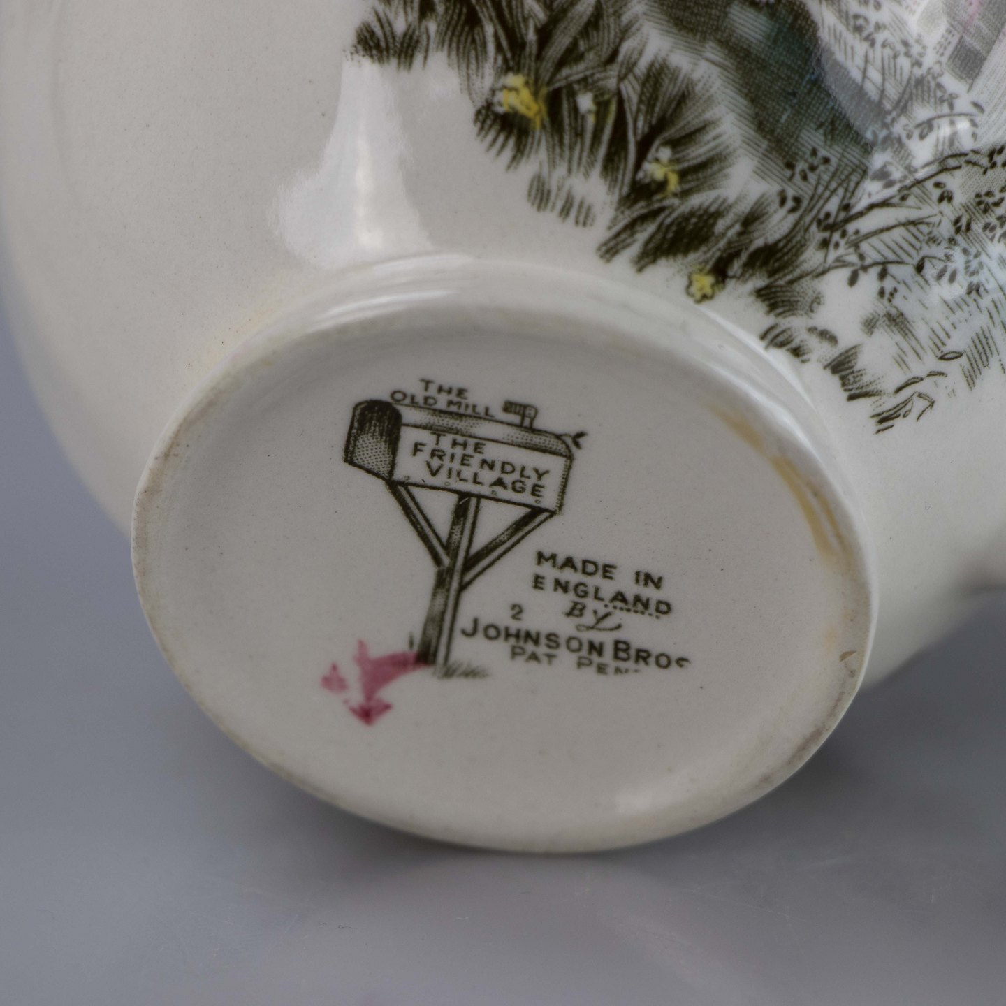 Kande i lys fajance med multifarvet landsbymotiv af The old mill.