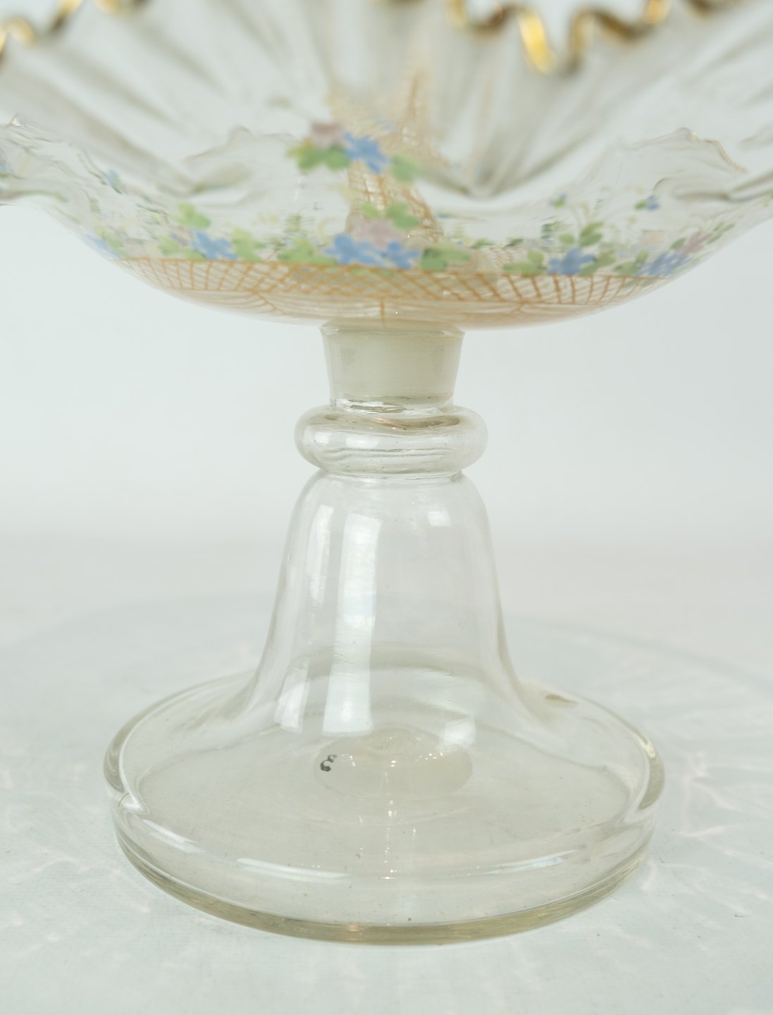 Stor glas opsats, dekoreret med farvet glas fra Fyns Glasværk omkring 1860erne.