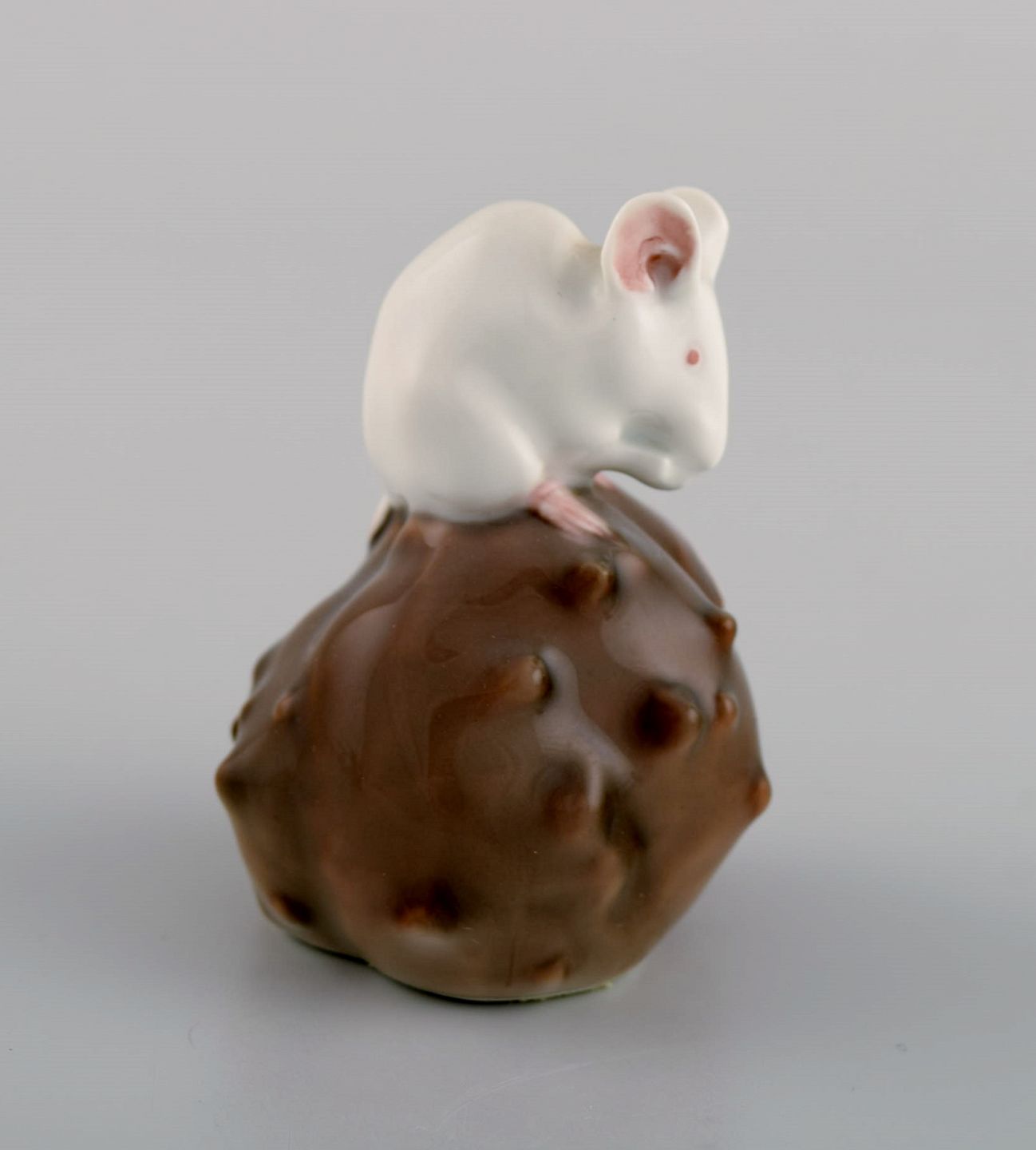 Royal Copenhagen porcelænsfigur. Mus på kastanje. Tidligt 1900-tallet. Modelnummer 511.
