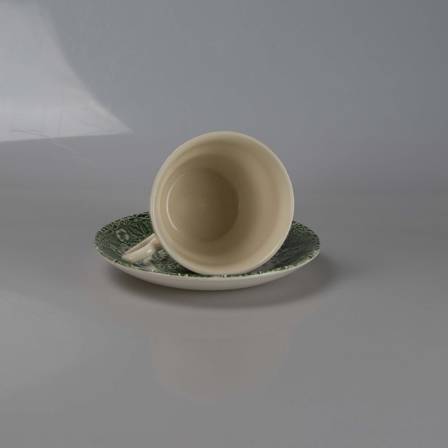 Kop i lyst jernporcelæn med landskabsmotiv i grøn nuance
