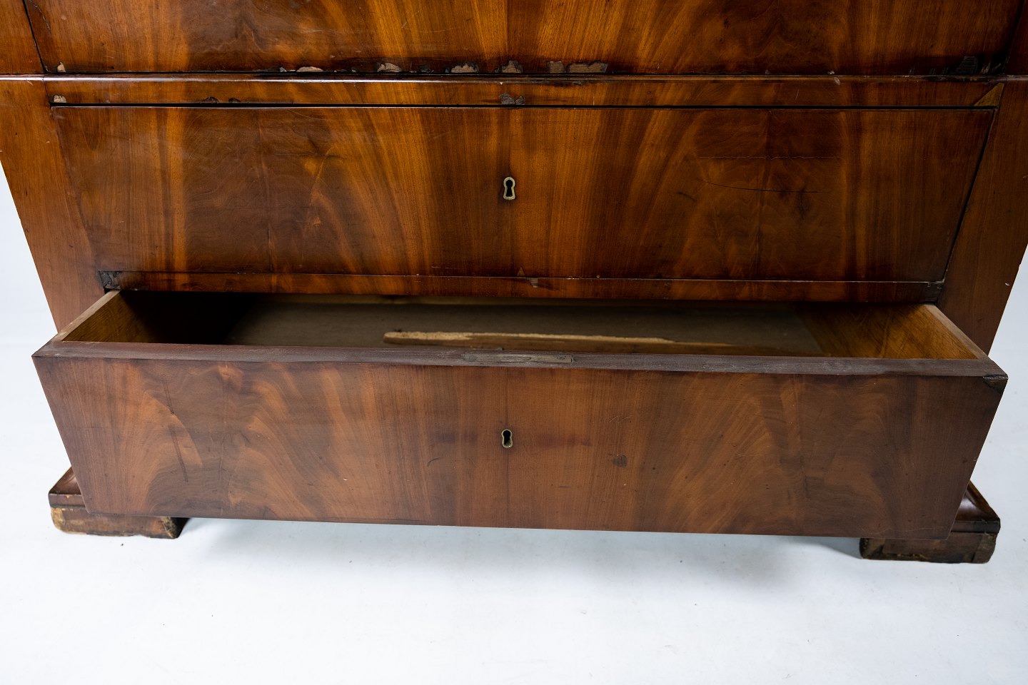 Chiffoniere af mahogni med udskæringer i stilen Sen Empire fra 1840erne.