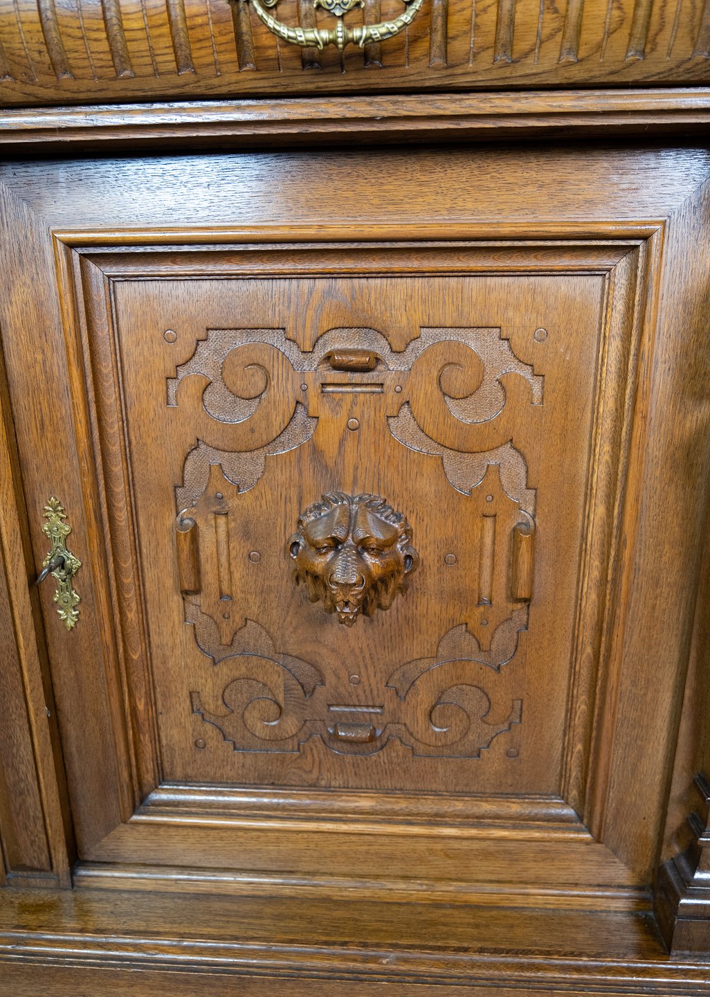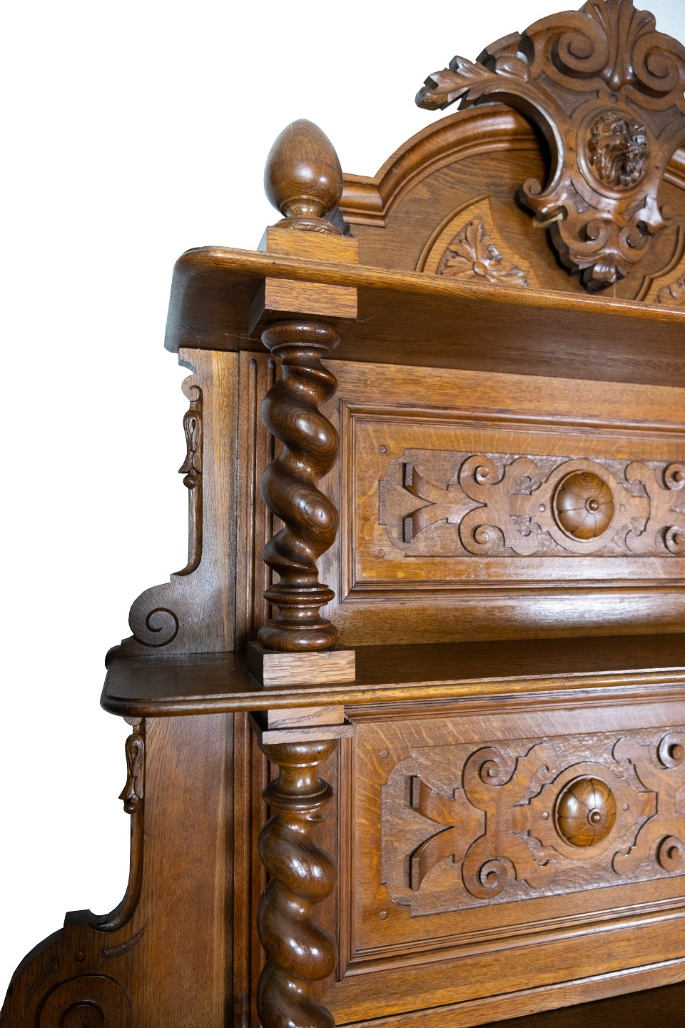 Anretterskab af eg med udskæringer, i flot antik stand fra 1920erne.
