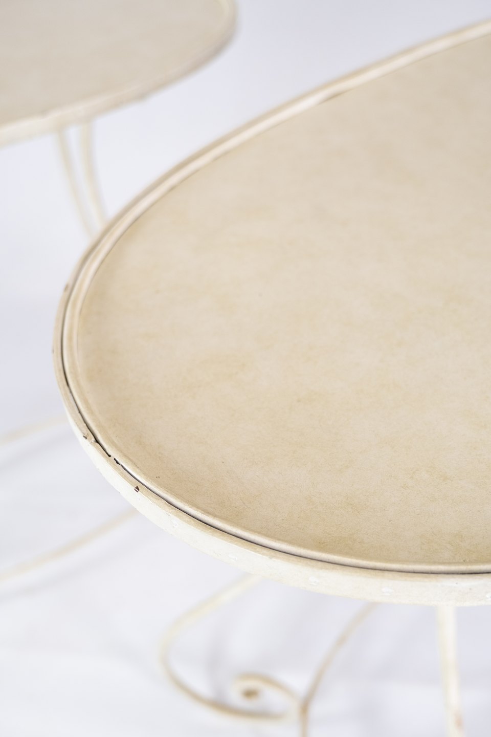 Sæt af to hvid malede metal haveborde, i flot antik stand.
