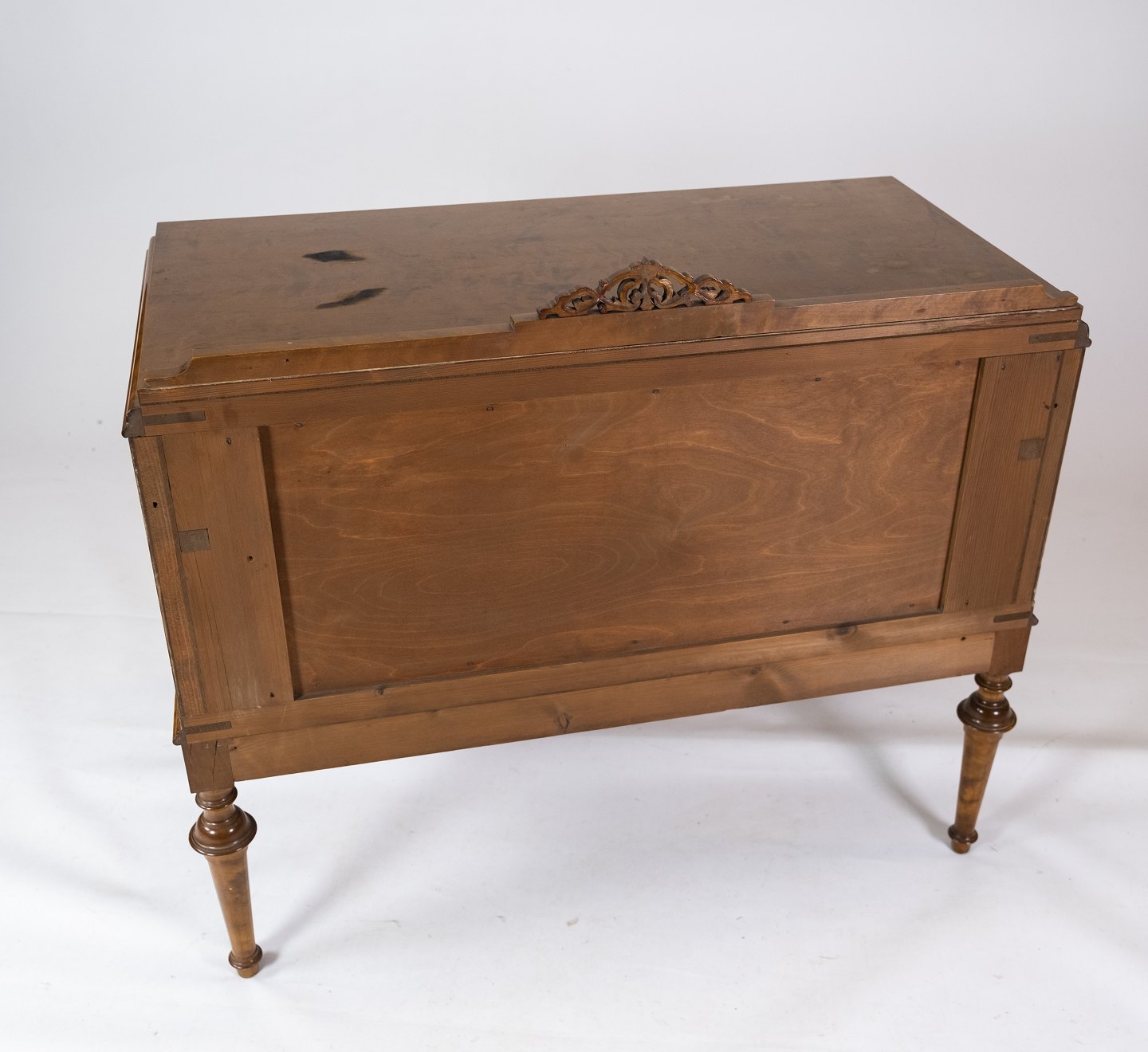 Kommode i birketræk med udskæringer, i flot antik stand fra 1930erne.