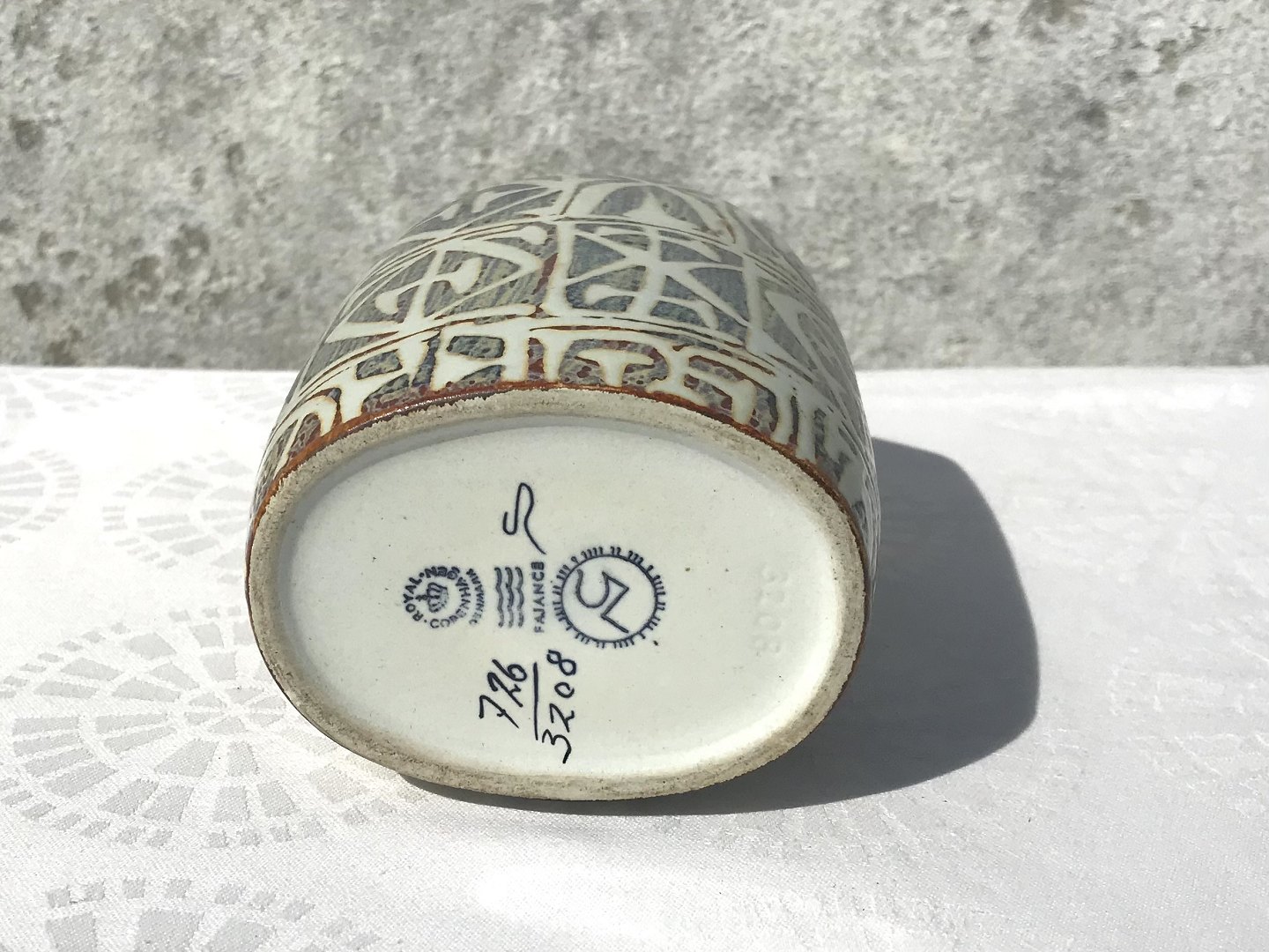 Royal Copenhagen, Baca, Vase med geometrisk mønster #726/3208, 18cm høj, Design Nils Thorsson *Pæn stand*