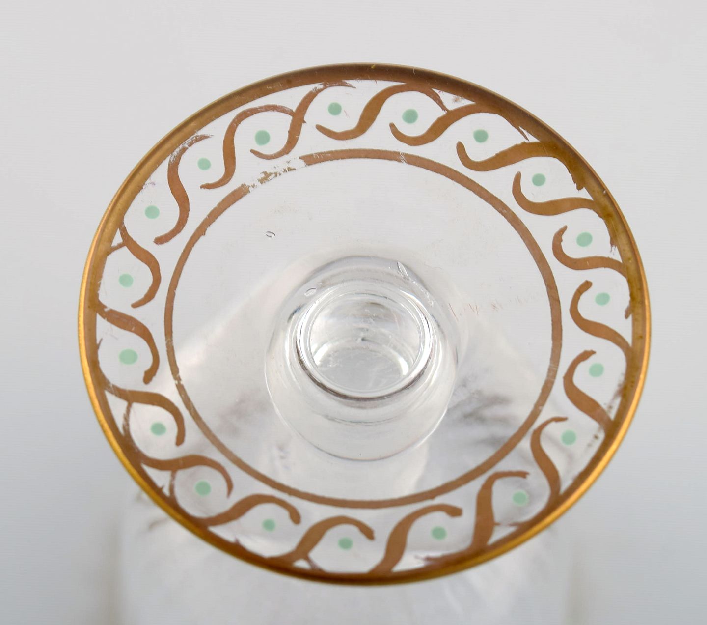 Nason & Moretti, Murano. Seks hvidvinsglas i mundblæst kunstglas med håndmalet turkis og gulddekoration. 1930'erne.