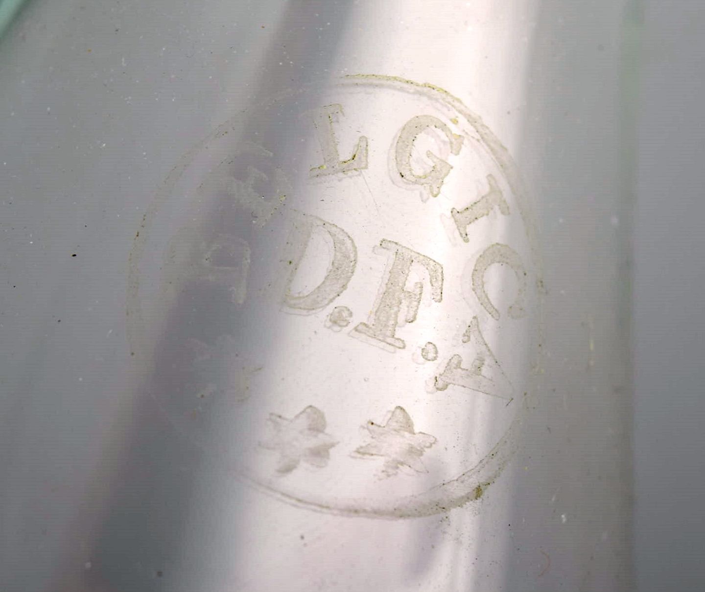 Antik petroleumsbrænder og lampe i mundblæst opalineglas. Ca. 1900.