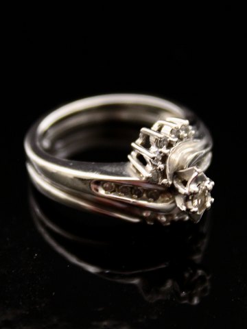 10 karat hvidguld ring størrelse 52 med stor zirkon og talrige små diamanter emne nr. 462115