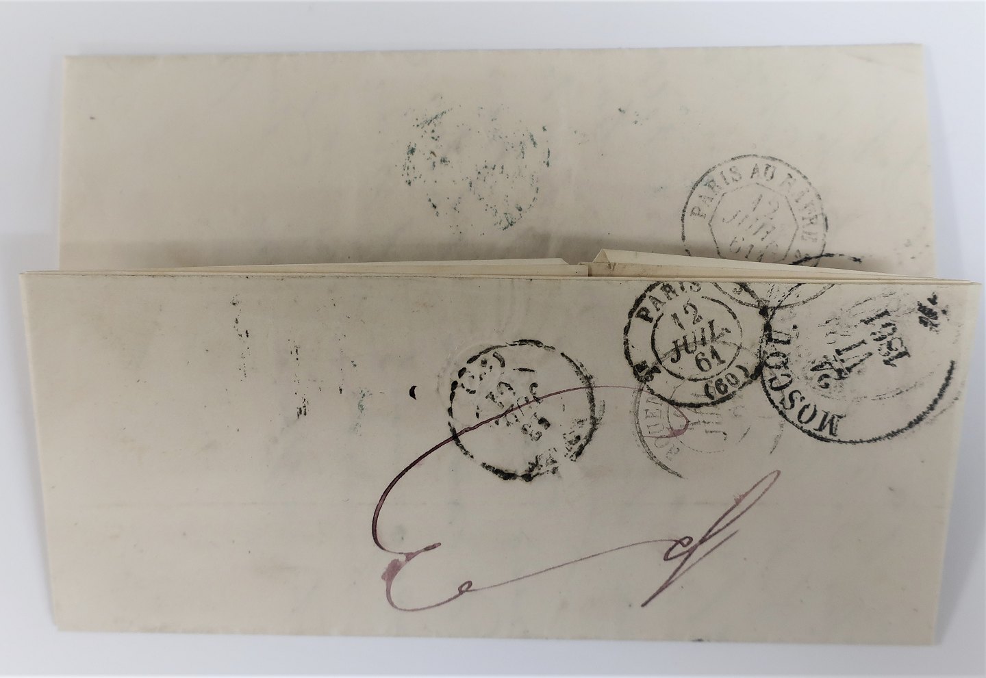 Brev fra Moscow, Rusland. 22.06.1861 til Rouen, Frankrig. Stempel P.35 (Aachen)