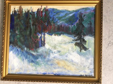 Maleri af Jan Høgh - Vinterparti Vestby, Norge 1993.
