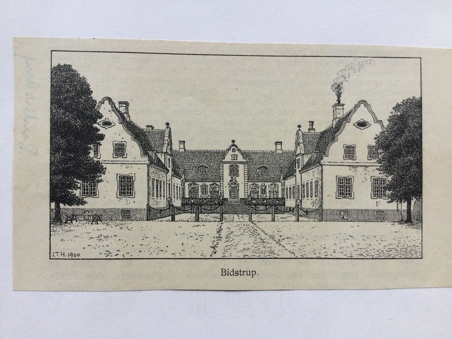 Xylografi af J.T. Hansen - Herregården Bidstrup ved Langå 1900.