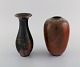 Paul Dressler for Grotenburg, Tyskland. To vaser i glaseret stentøj. Smuk krakeleret glasur i røde og grønne nuancer. 1940'erne.