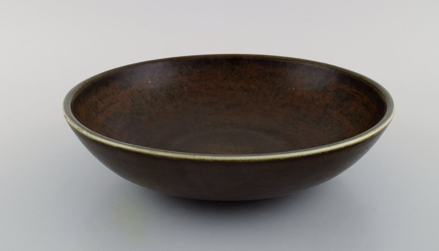 Rund Rörstrand skål i glaseret keramik. Smuk glasur i brune nuancer. Midt 1900-tallet.