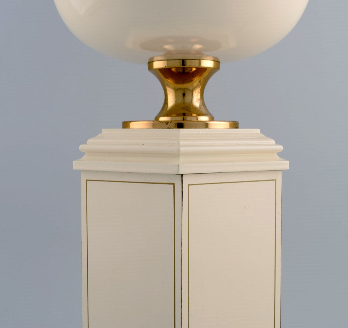 Le Dauphin, Frankrig. Stor bordlampe i creme lakeret metal og messing. 1970'erne.