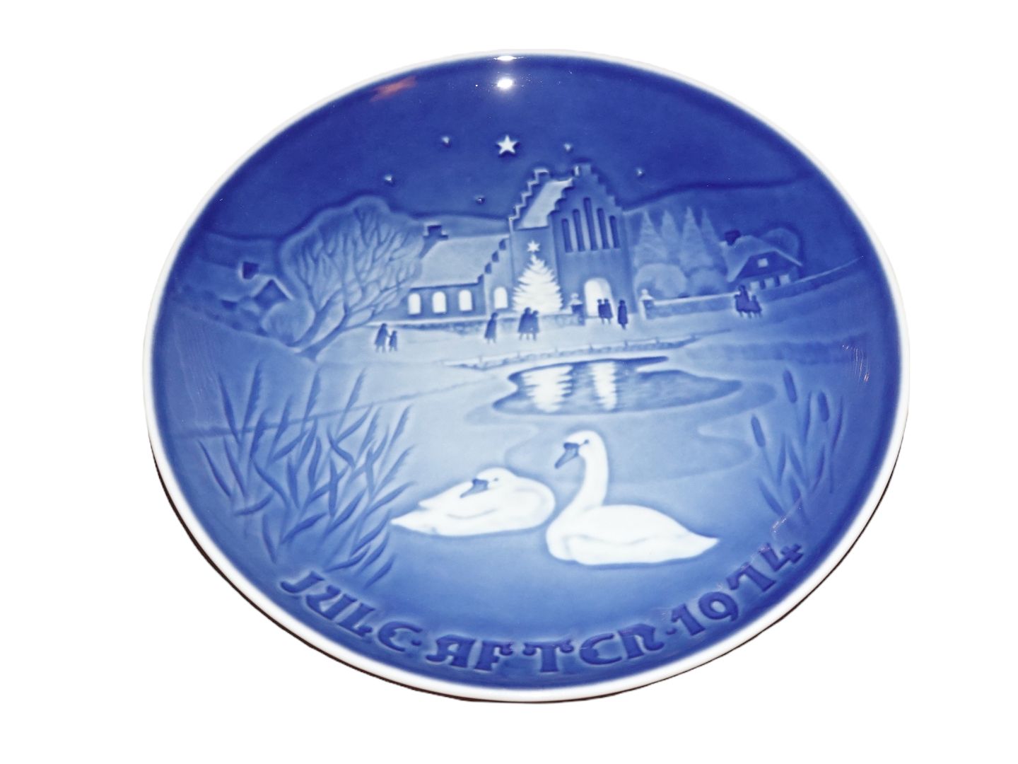 Bing & Grøndahl juleplatte fra 1974 - Svaner foran Landsbykirke.