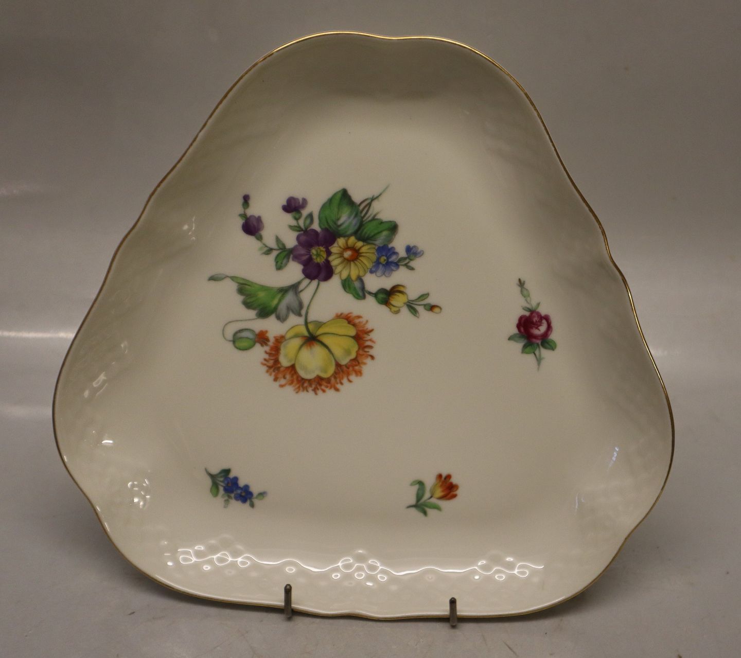 040 Trekantet fad 25 cm B&G Saksisk Blomst - Creme