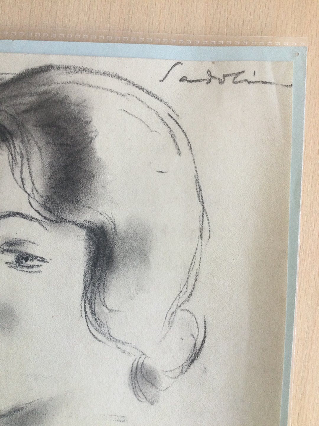 Text available in Danish: Tegning af Ebbe Sadolin - Portræt af skuespillerinden Karin Evans.