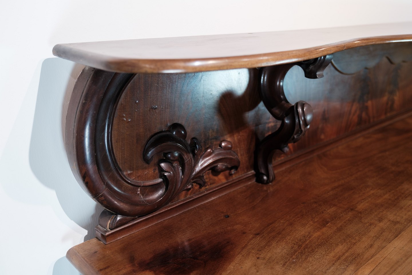 En senempire skænk i mahogni med en buede front fra 1840'erne.
