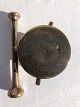 Tung messing morter med pistel 15cm diameter, 15cm høj, Pistil længde 26,5 cm, samlet vægt 4,8 kilo *Med en kraftig sprække langs bunden (se foto) ellers fin patineret*