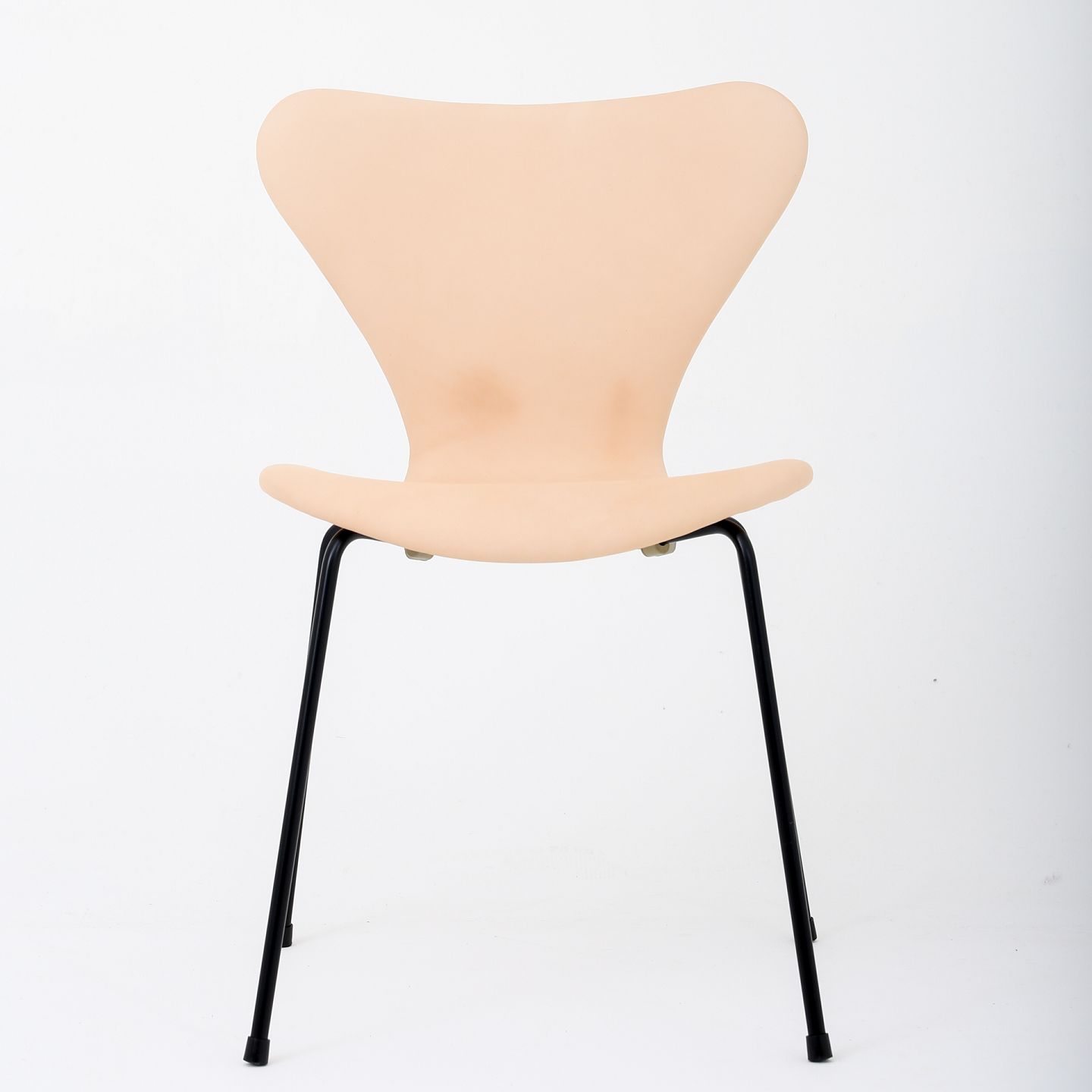 AJ 3107 - Nybetrukket 'Syver'-stol i naturlæder med sortlakeret stålstel. KLASSIK tilbyder polstring af stolen med stof eller læder efter eget valg.