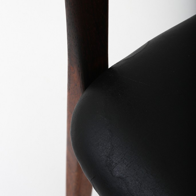 Sjælden karmstol i palisander og sort læder. Model J2833. Designet i 1958.