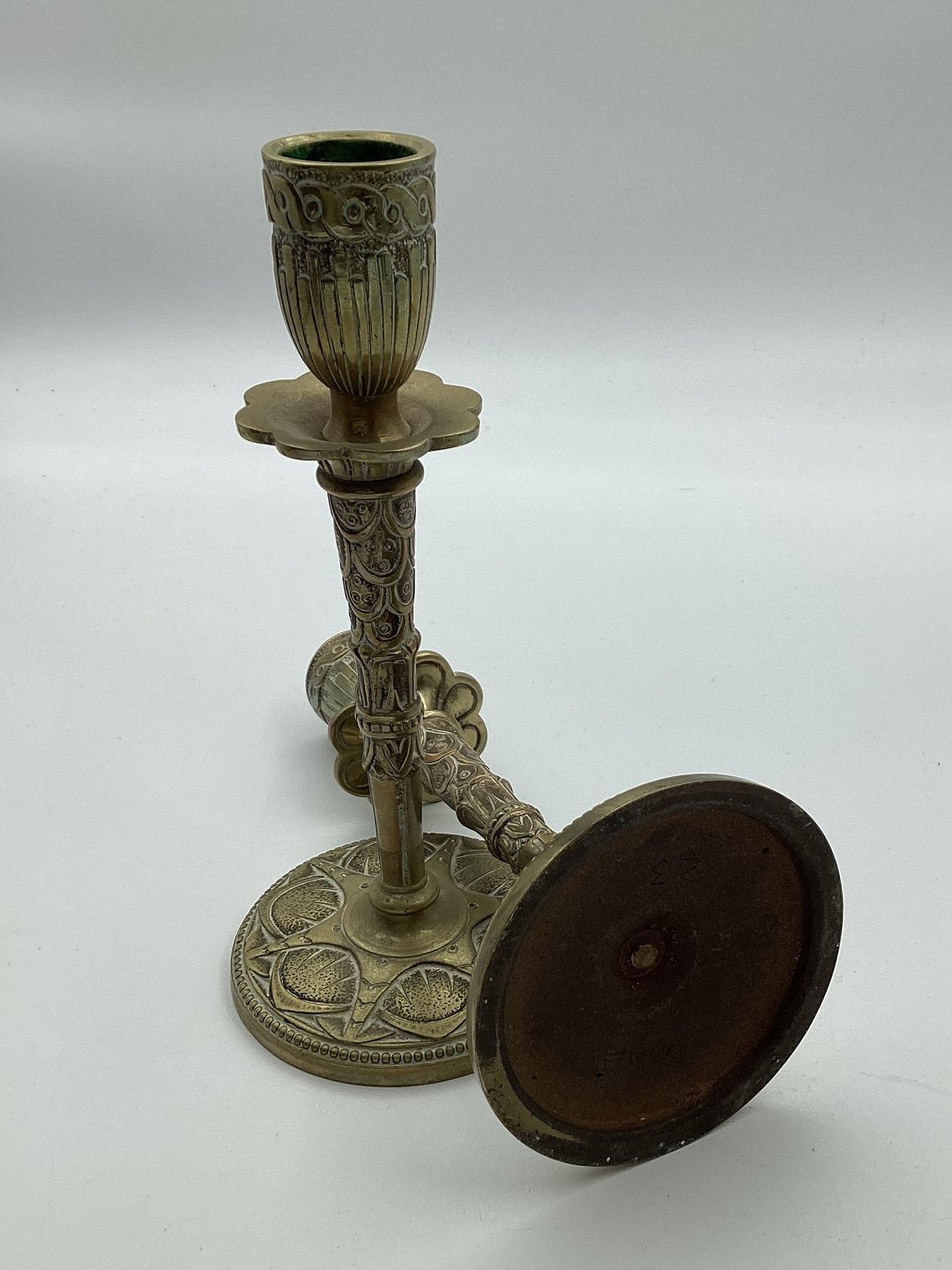 Pair of candle sticks in brass with art deco decorations c. 1920