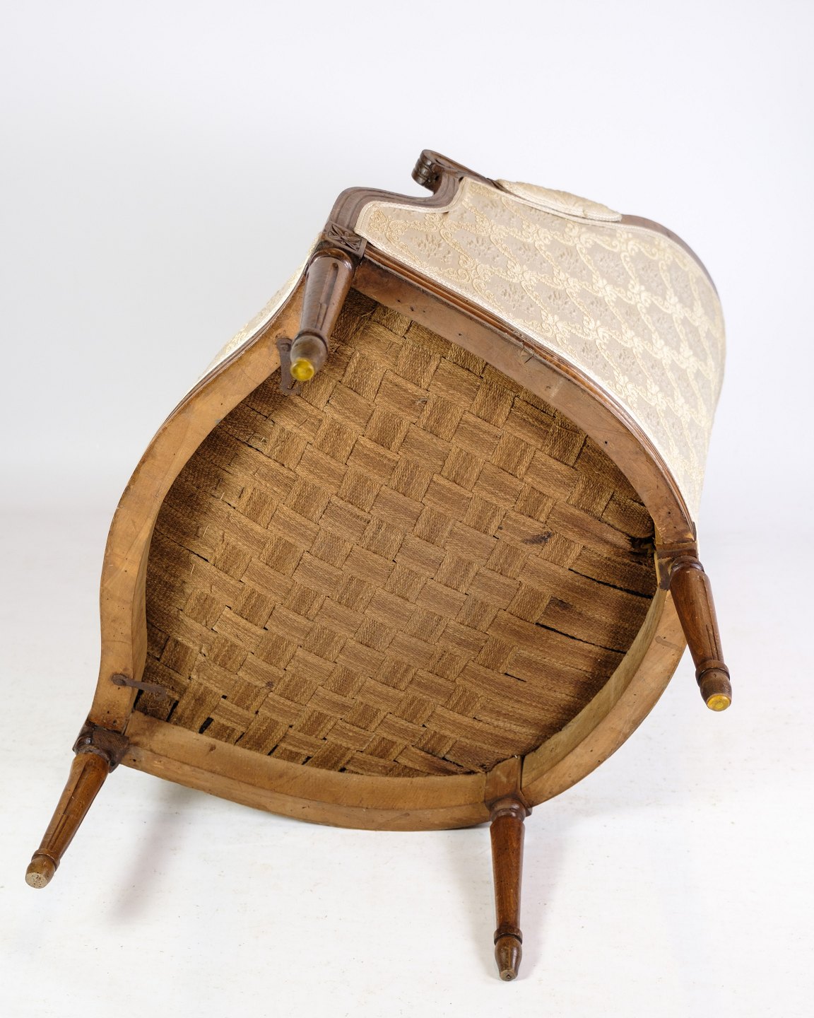 Et sæt af to louise seize stole i poleret mahogni med lyst dekoreret stof fra 1880'erne. Står i meget god stand.