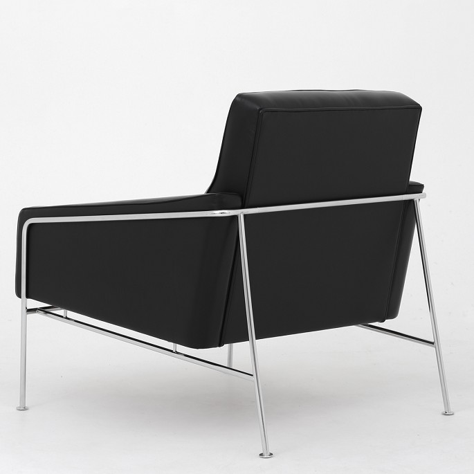 Model AJ 3301 - Nybetrukket 'Lufthavnsstol' i sort (semi-anilin) Klassik-læder på stel af stål. Formgivet i 1956.