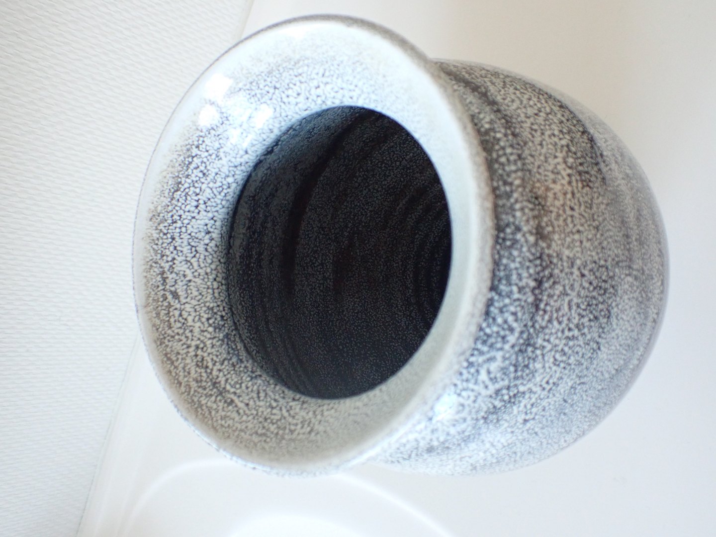 Svend Hammershøj (1873 - 1948) for Kähler. Stor vase med krave med blank dobbeltglasur i sort og hvidt. Stemplet HAK, Danmark og initialet SH. 11 med blyantskrift. Højde: 21,5 cm. Bredeste diameter: 18,5 cm. I fin stand uden glasurafslag.