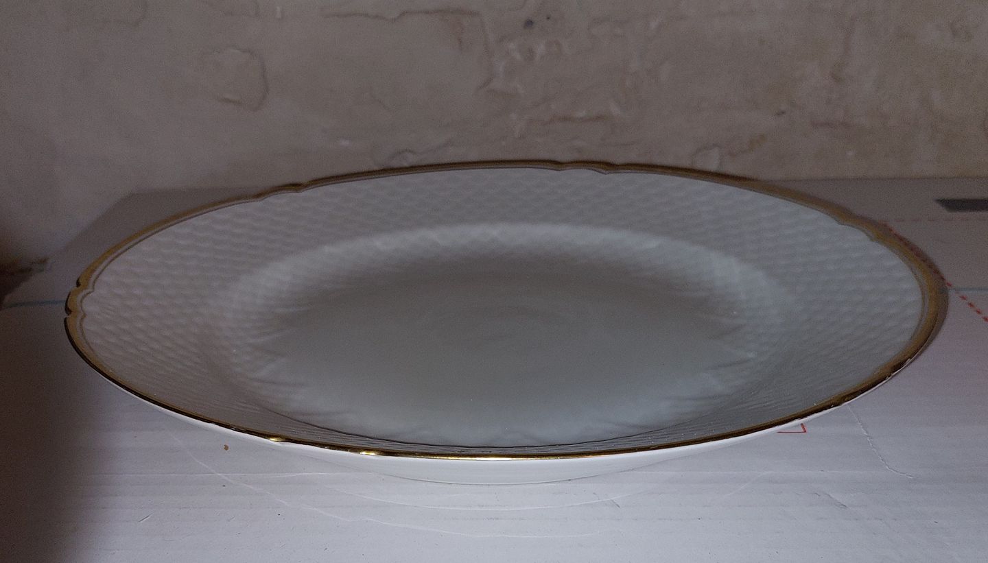 Stort Hartmann fad i porcelæn med guldkant fra Bing & Grøndahl. Fremstår i perfekt stand. 1. sortering. Modelnummer 20. Mål: H. 4½ cm Ø. 31½ cm
