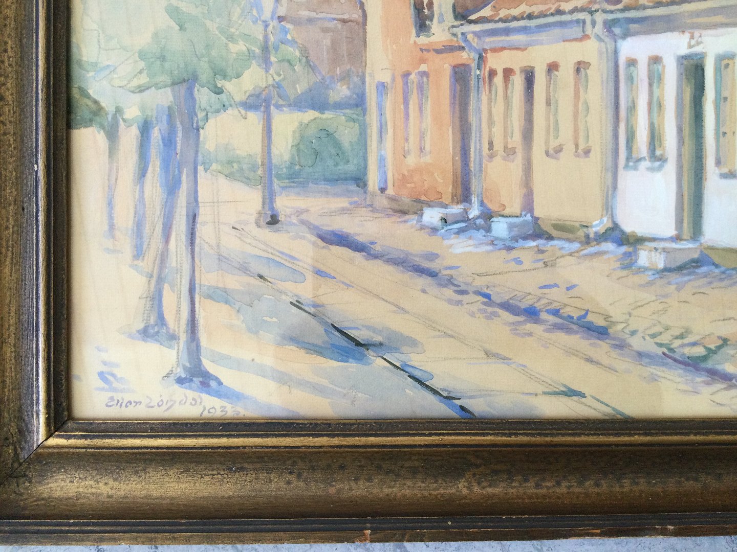 Akvarel af Eiler Løndal - Landsbygade 1933.