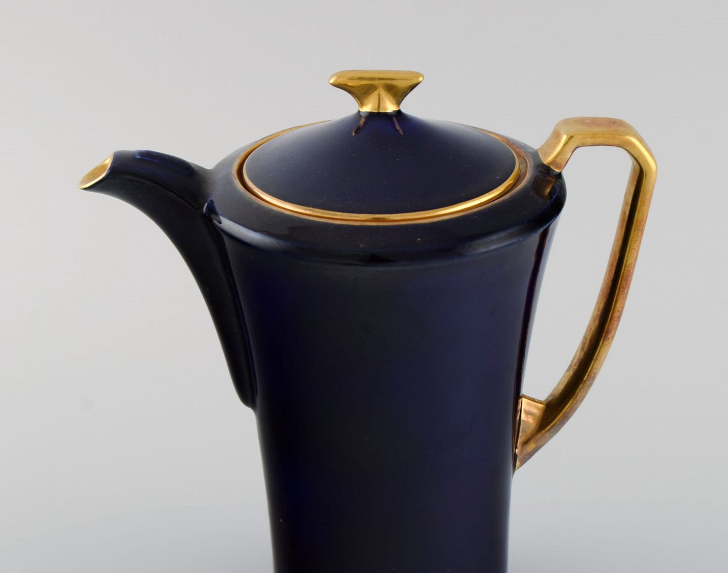 Crown Devon, England. Art deco kaffeservice til fem personer i marineblå porcelæn, indvendigt forgyldt. 1930'erne.