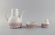 Bjørn Wiinblad for Rosenthal. Lotus porcelænsservice. Kaffekande med varmer til fyrfadslys og flødekande dekoreret med lyserøde lotusblade. 1980'erne.