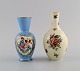 Limoges, Frankrig. To parfumeflakoner, tre vaser og lågskrin i håndmalet porcelæn. Blomster og gulddekoration. 1930/40'erne.