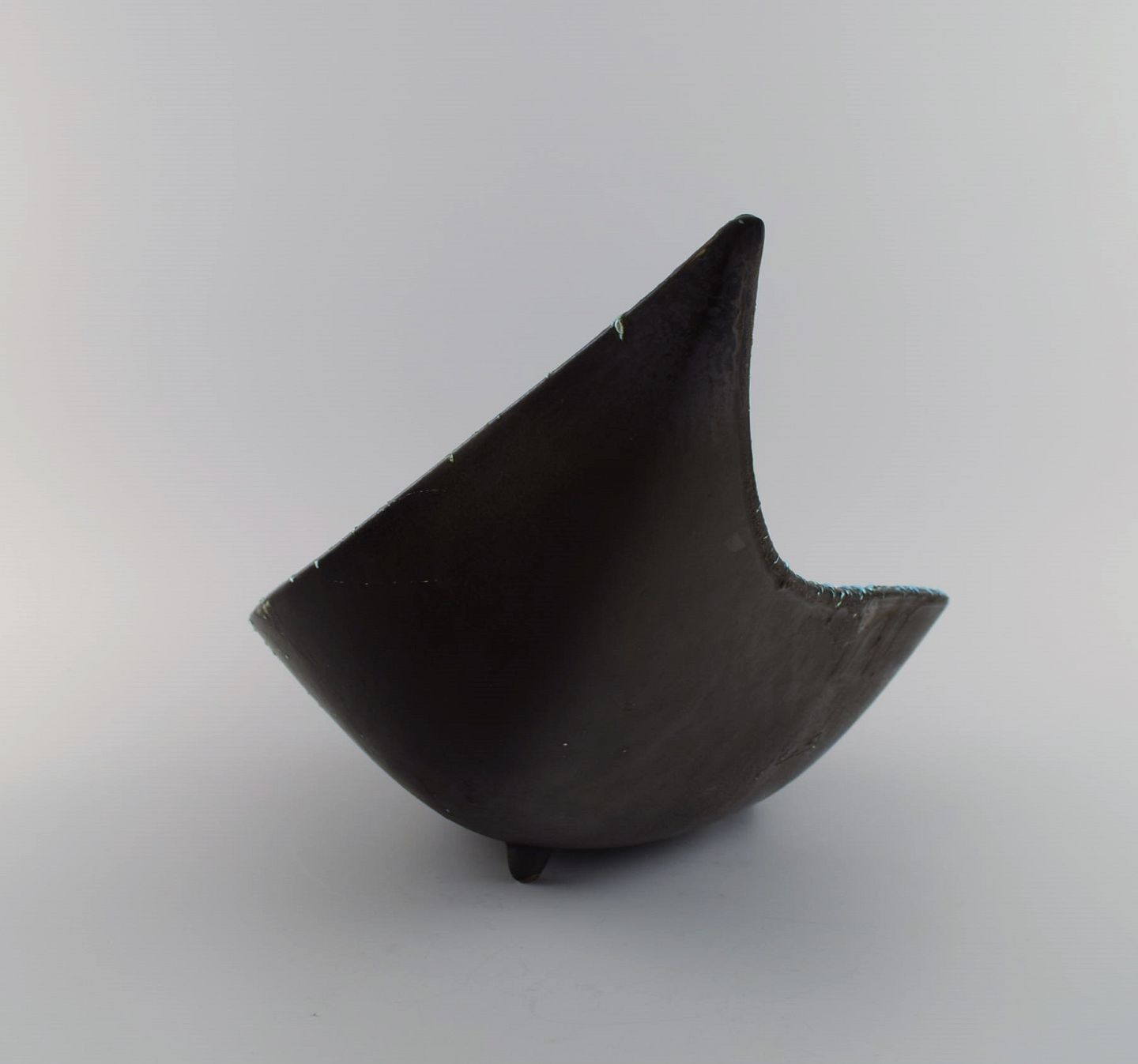 Stor freeform skål i glaseret keramik. Smuk glasur i azurblå nuancer. Frankrig, 1960'erne.
