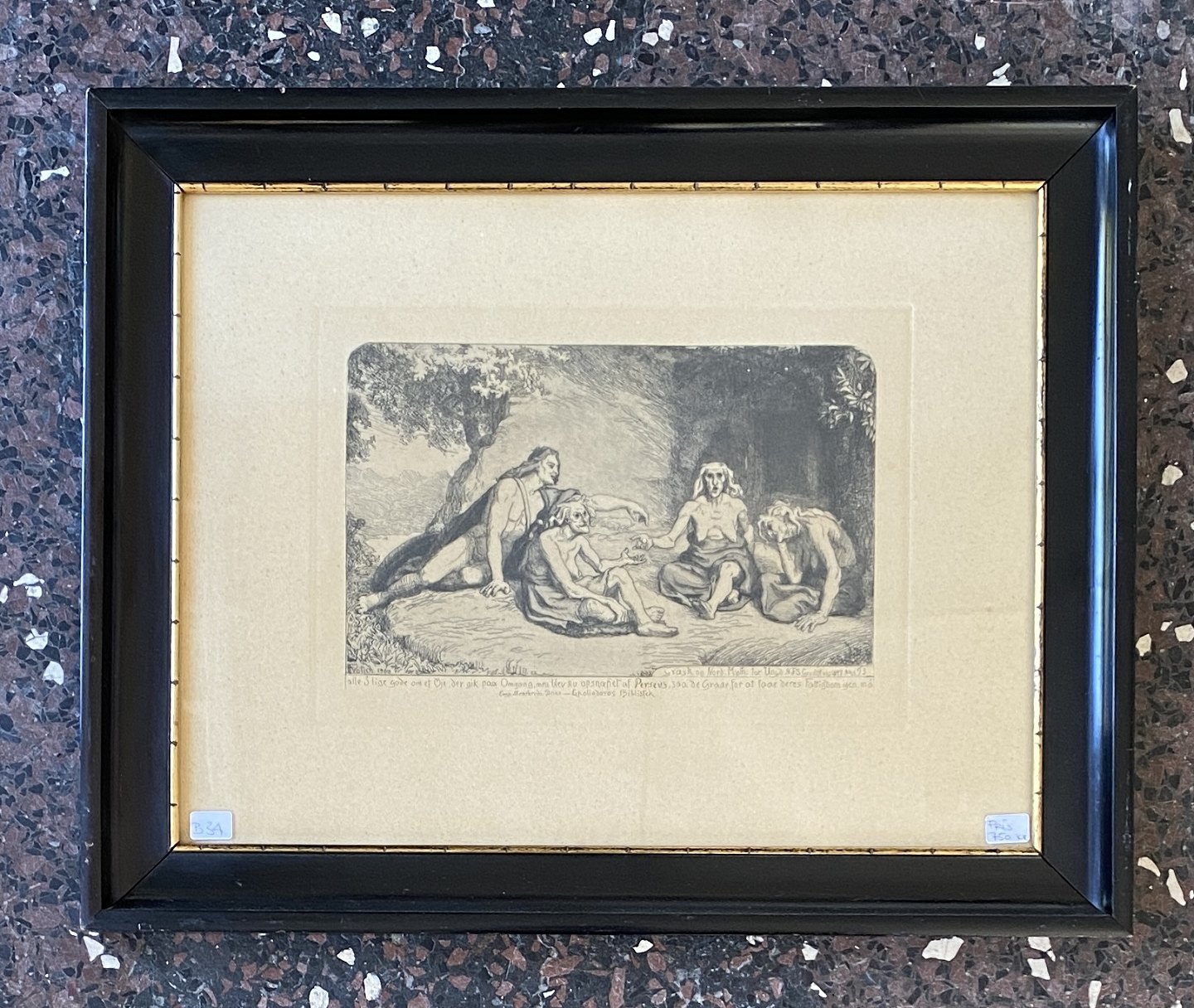 Motif from Grundtvig Greek and Norse mythology. Original erasing with mat in black frame. Dimensions: 35.5 x 44.5 cm. (18 x 25.5 cm).