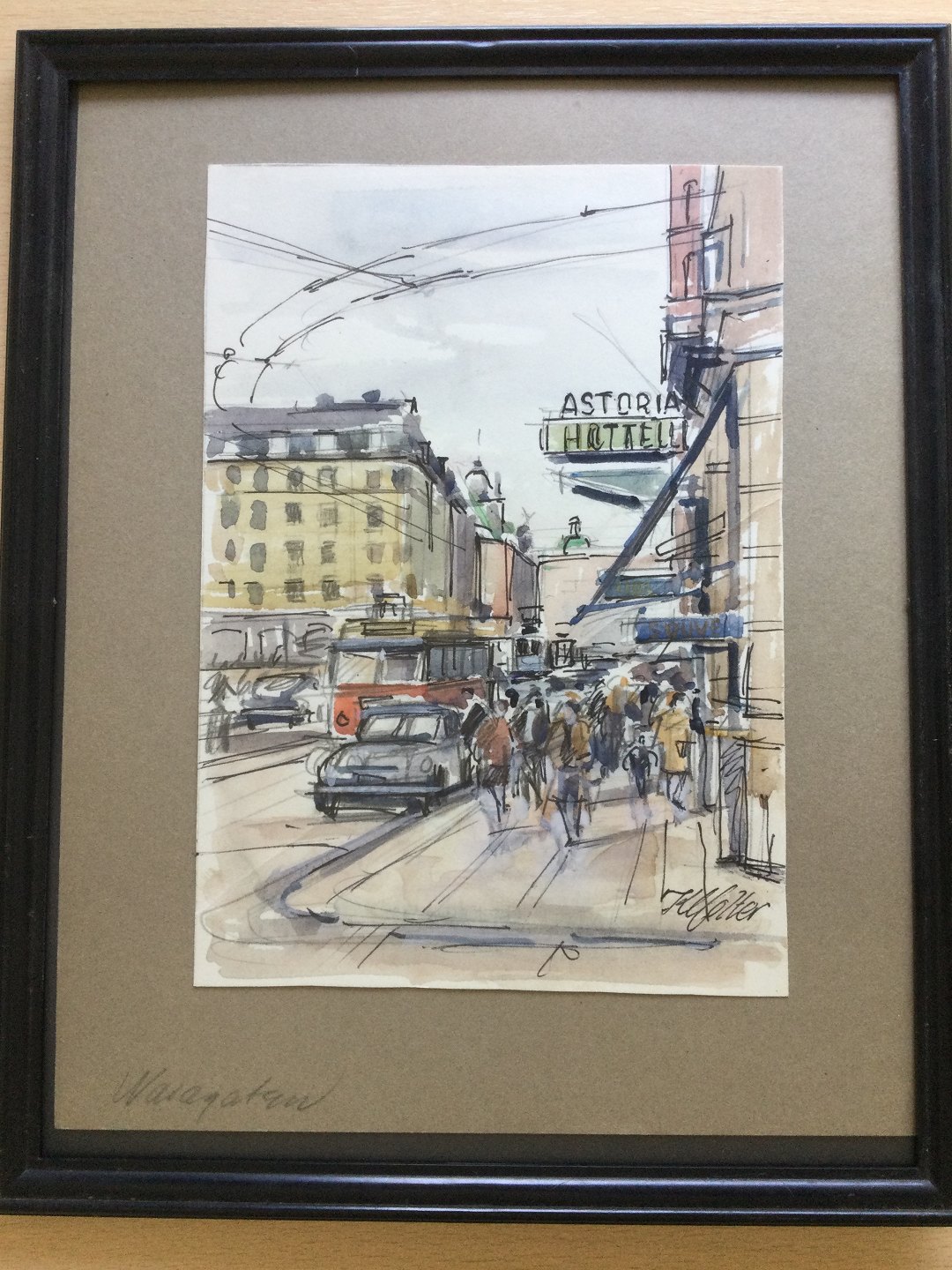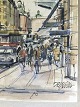 Akvarel af Kai Molter - Vasagatan i Stockholm.