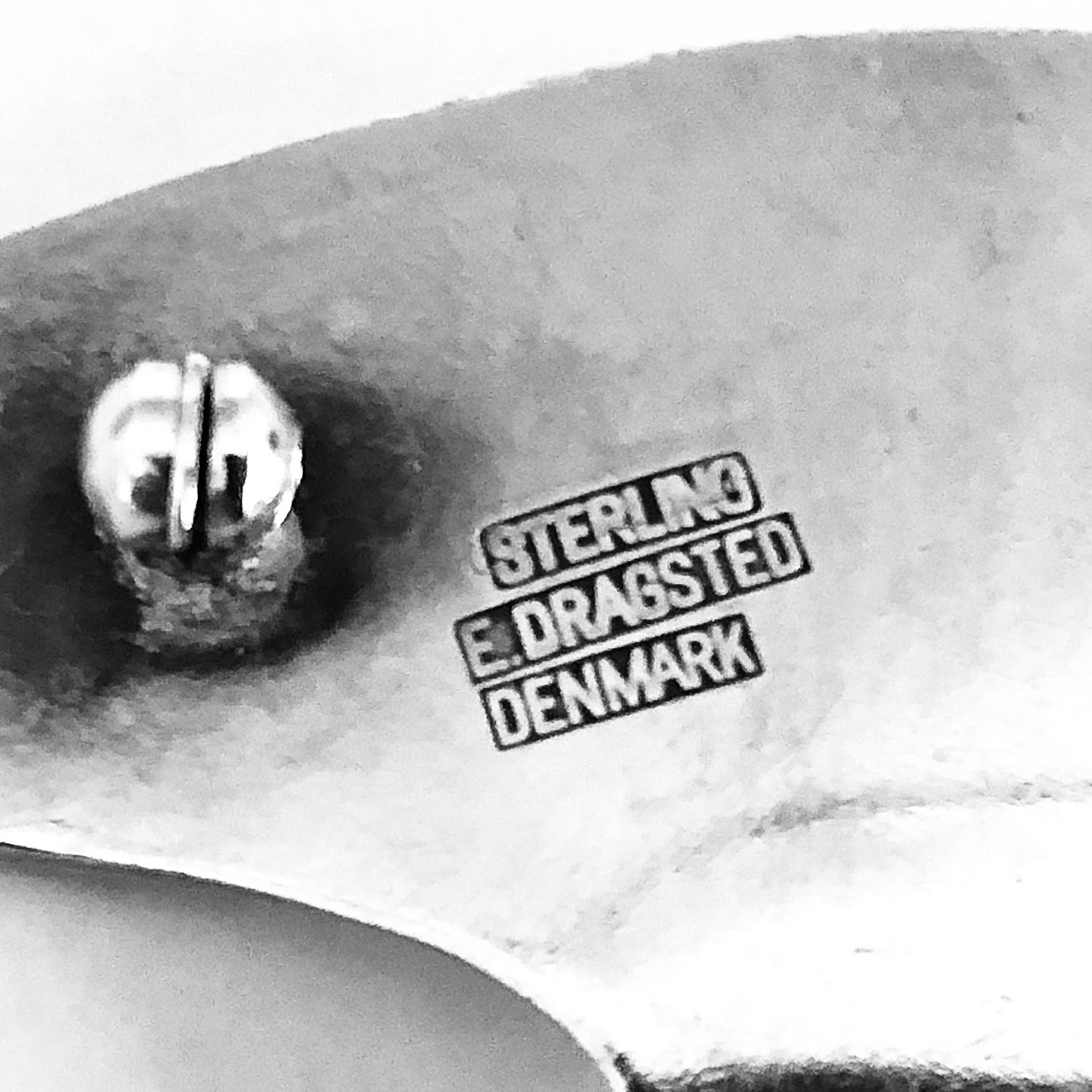 Broche af sterlingsølv udført og håndlavet hos E. Dragsted Københarvn. Mål: 5,5 x 3,2 cm.