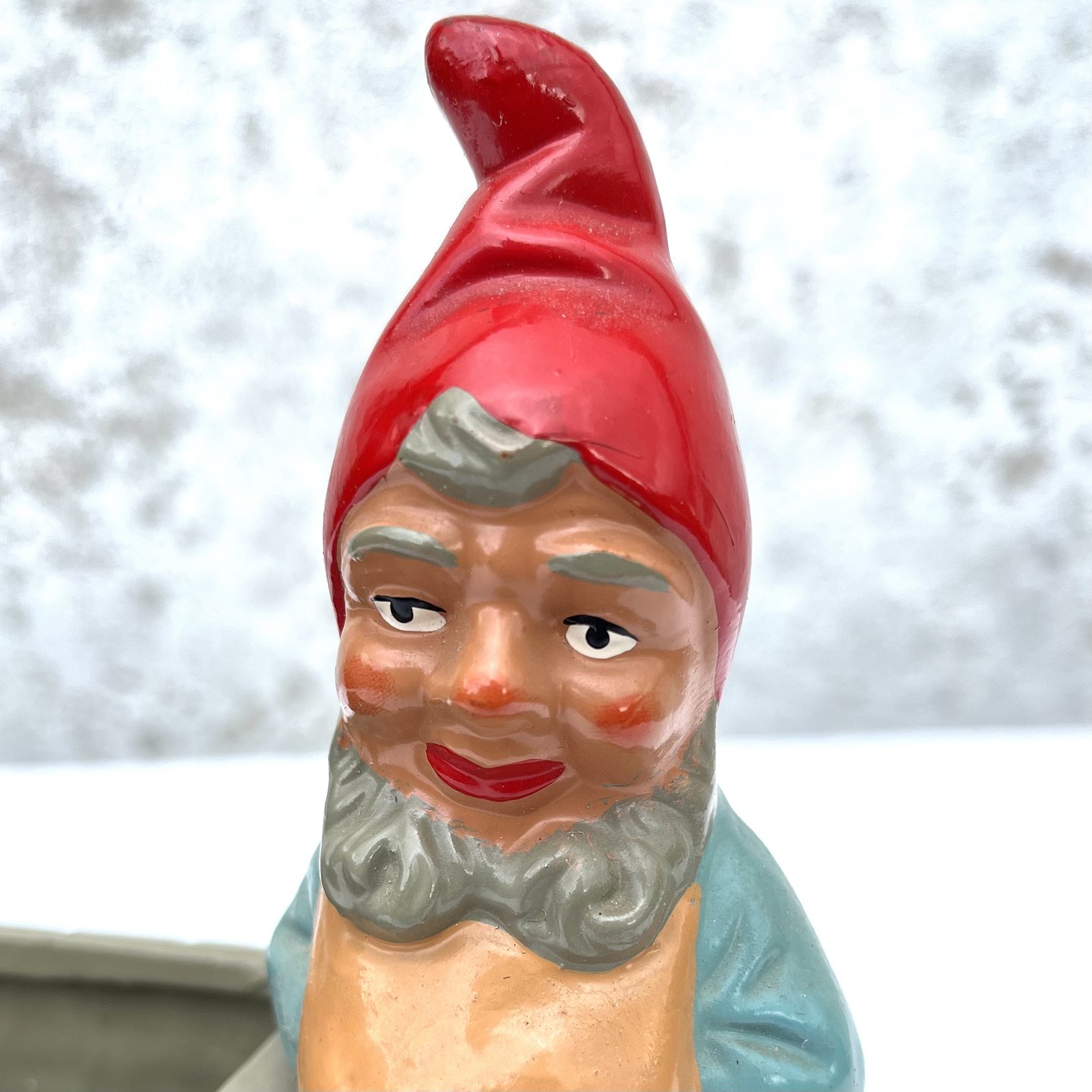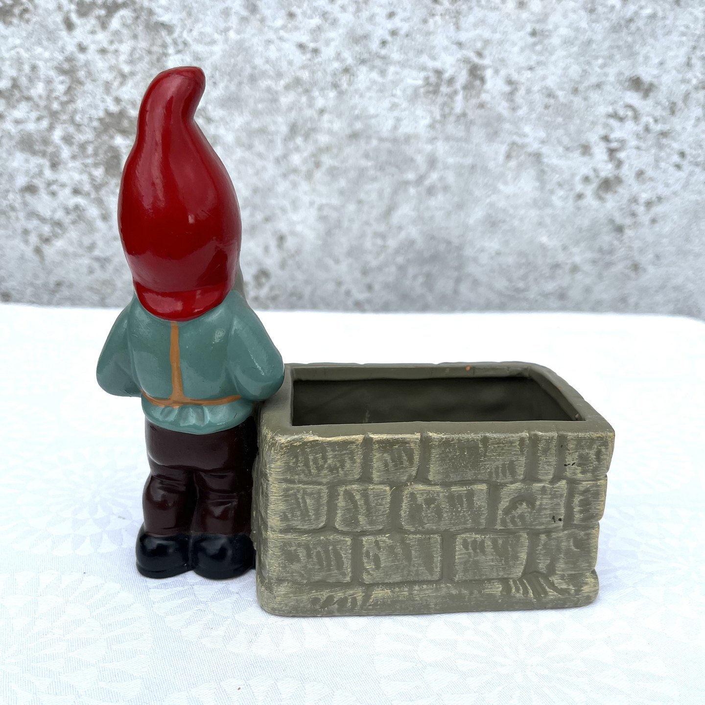 Ler nisse med blomster kumme, 17cm høj, 15cm bred *Perfekt stand*